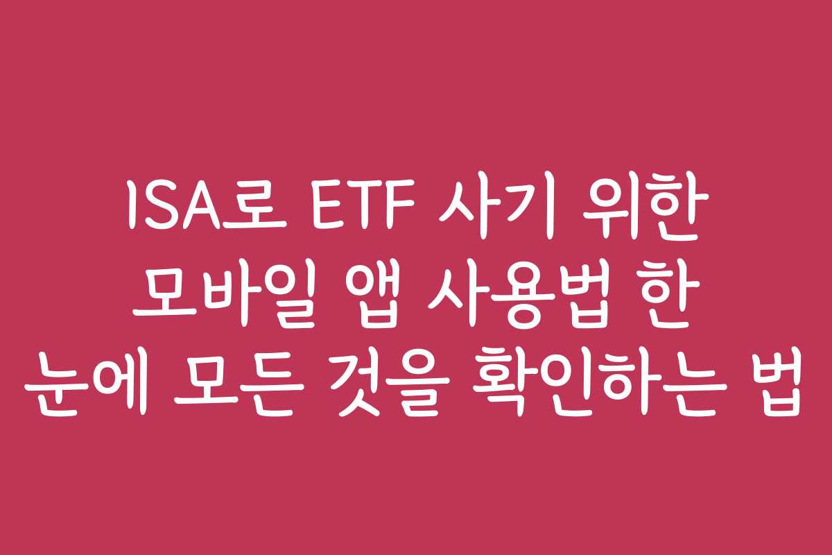 ETF에 투자하고 싶지만, 어떻게 시작해야 할지 막막하신가요? 또한 ISA(Individual Savings Account) 제도를 활용해 보다 효율적인 투자를 원하신다면 모바일 앱이 필수입니다. 이 글에서는 ISA로 ETF를 사기 위한 모바일 앱 사용법을 쉽게 이해하고 한 눈에 확인하는 방법에 대해 다뤄보겠습니다.