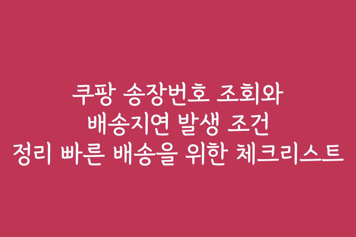 쿠팡 송장번호 조회와 배송지연 발생 조건 정리 빠른 배송을 위한 체크리스트