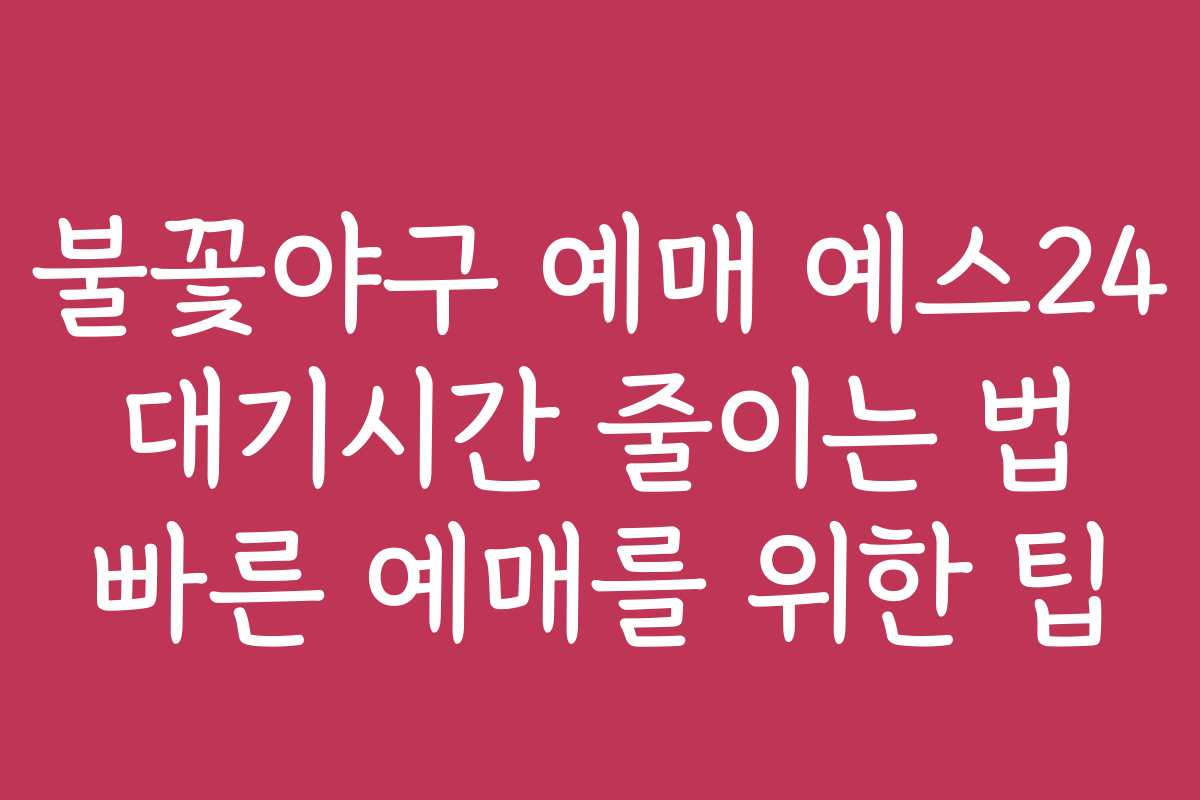 불꽃야구 예매 예스24 대기시간 줄이는 법 빠른 예매를 위한 팁