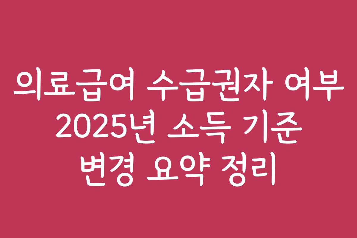 의료급여 수급권자 여부 2025년 소득 기준 변경 요약 정리