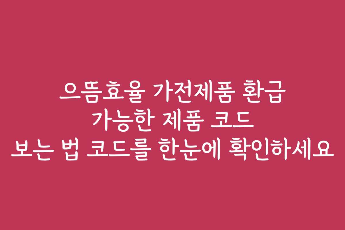으뜸효율 가전제품 환급 가능한 제품 코드 보는 법 코드를 한눈에 확인하세요