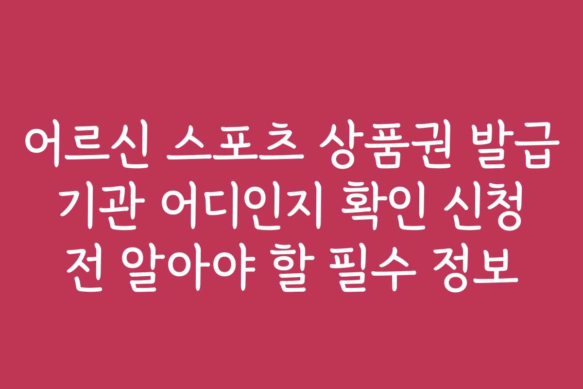 어르신 스포츠 상품권 발급 기관 어디인지 확인 신청 전 알아야 할 필수 정보