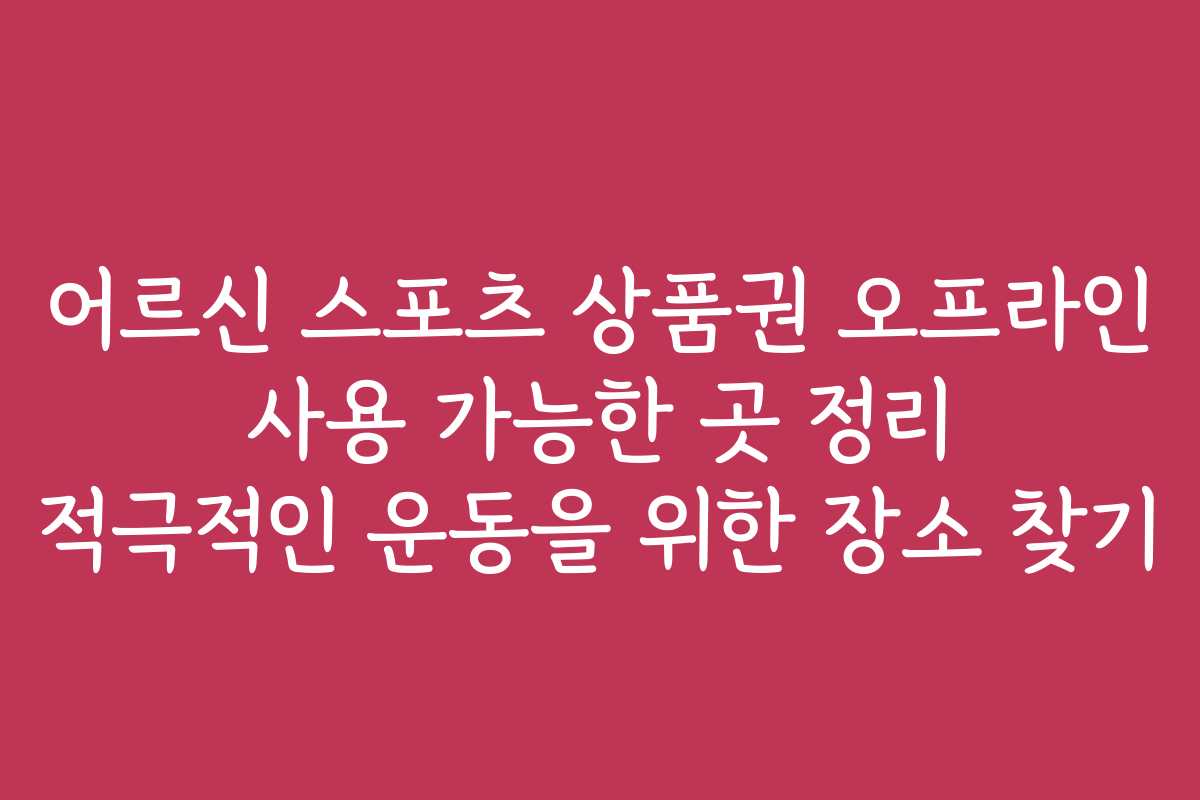 어르신들이 건강을 유지하기 위해 운동을 하려고 하는데, 어디서부터 해야 할지 막막하시죠? 본 포스트에서는 어르신 스포츠 상품권을 이용해 오프라인에서 적극적으로 운동할 수 있는 장소를 정리했습니다. 다양한 선택지를 통해 운동을 시작해보세요!