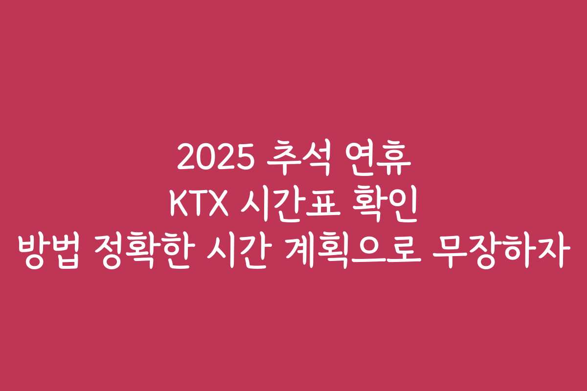2025 추석 연휴 KTX 시간표 확인 방법 정확한 시간 계획으로 무장하자