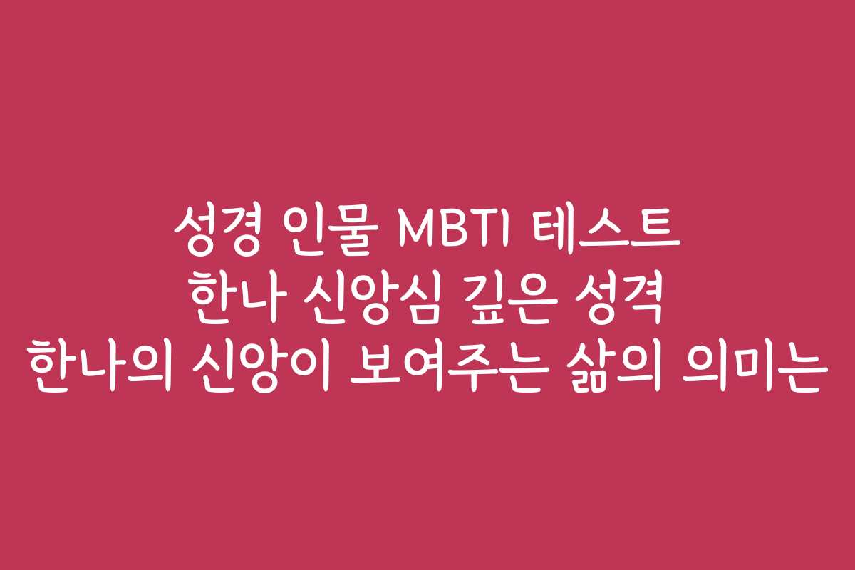 성경 인물 한나는 신앙심이 깊고 강직한 인물로 알려져 있습니다. 한나의 이야기는 많은 사람들에게 영향을 미치며, 그녀의 성격과 신앙은 오늘날에도 여전히 중요한 교훈을 줍니다. 이번 글에서는 한나의 MBTI 성격 유형과 그녀의 신앙이 우리 삶에 주는 다양한 의미를 알아보겠습니다.